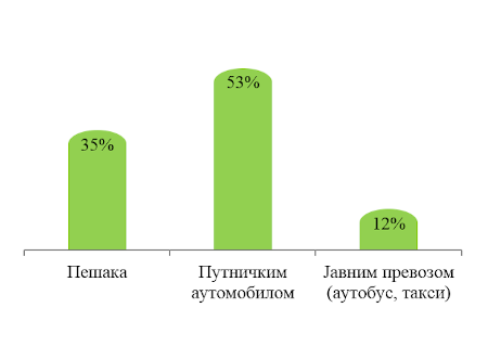 Slika 5. Procentualna raspodela ispitanika prema svakodnevnom vidu prevoza.