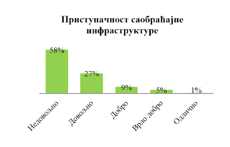 Slika 24. Procentualna raspodela odgovora ispitanika prema pristupačnosti saobraćajnoj infrastrukturi.